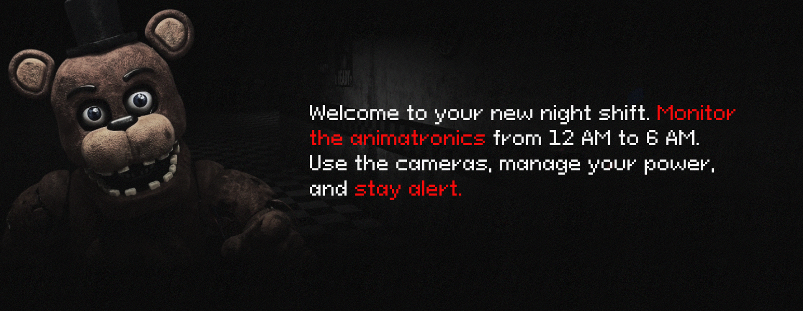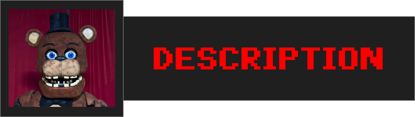 Five Nights at Freddy's and its characters are the intellectual property of Scott Cawthon. This game is not endorsed by, affiliated with, or officially supported by Scott Cawthon. This project is made solely for entertainment purposes & non-profit fan-made game. No copyright infringement is intended.